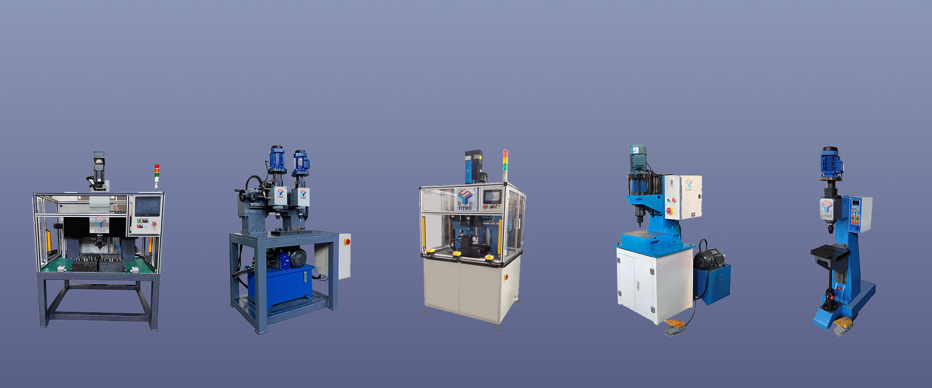 鈑金加工領域鉚接機: 壓鉚中心丨 機械手抓料4臺聯動壓鉚機丨 4振動盤送料液壓壓鉚機丨 2振動盤送料液壓壓鉚機丨 3振動盤送料氣液壓鉚機丨 手動放料壓鉚機